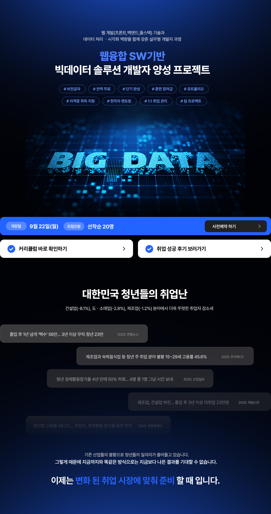 프론트엔드 개발자, 백엔드 개발자, 풀스택 웹개발자, 빅데이터 솔루션 개발자, 데이터 기반 웹서비스, 공공기관 빅데이터 전문가, SI프로젝트 개발자, ERP/CRM 솔루션, 크로스 플랫폼 개발자, QA/웹운영/기획자